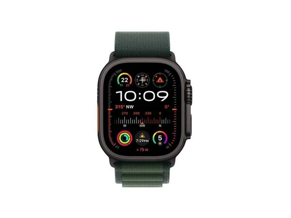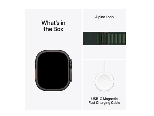 ابل ساعه الترا 2 جي بي اس + خلوي هيكل من التيتانيوم الأسود مقاس 49 ملم مع حلقة جبال الألب باللون الأخضر الداكن - ميديم